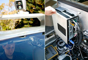 The device atop the car produces a detailed map of the environment which is used to navigate safely. Device atop the car gives details of surroundings
