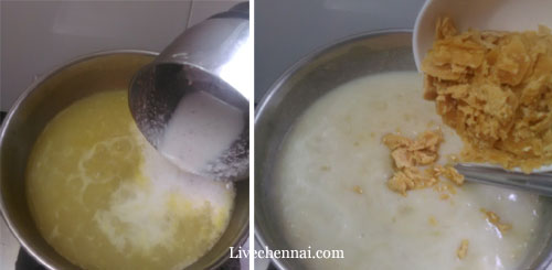 Now add the grated jaggery to this and boil for about 5 minutes.