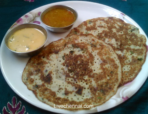 Your hot Kambu dosai is ready! Serve with idli podi / any chutney (tomato chutney / red coconut chutney) of your choice.