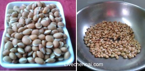 Heat the pan and roast the Avarakottai (Field Beans) slightly and soak it overnight before the day of preparation.
