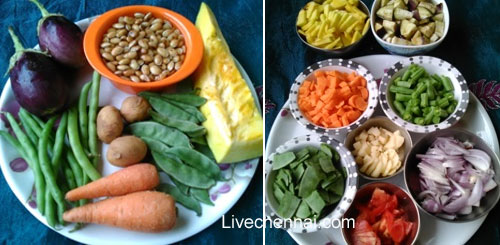 Cut all the mentioned vegetables into small even sized pieces and keep aside.