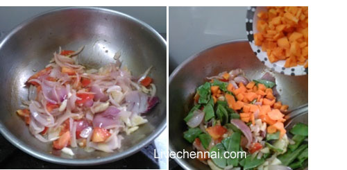 Since we are adding additional vegetables like carrot, beans, the dish will be very colourful and healthy too!