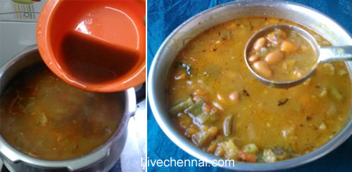 Allow the dish to boil for some time and add the tamarind extract and keep the stove in high flame.