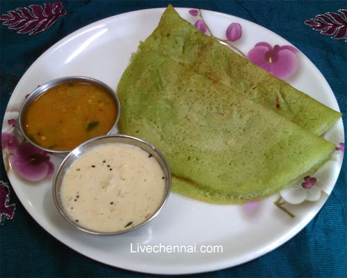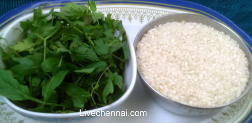 Now a days, you get this Keerai in the market. Remove its leaves from the creeper and store it in the fridge. Just wash few leaves and grind it with red chilli and garlic and add it to the dosa batter simply before the time of preparation.