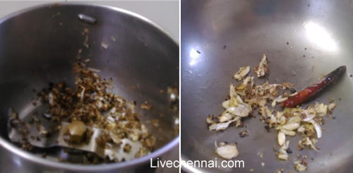 Heat the pan with a spoon of oil and add the mustard seeds and curry leaves. Don�t allow it to roast well.