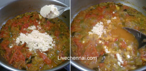 Then open the lid and add the fried gram powder. (You can refrigerate this powder and use it whenever needed).
