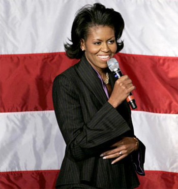 Michelle Obama, wife of Barack Obama, the president of the United States stole the show when she introduced Barack H Obama to the school children assembled at St Xavier�s College Mumbai to ask Barack H obama questions on various topics ranging from American economy to Pakistan status as terrorist ridden country.