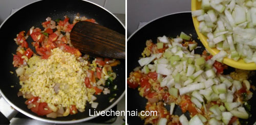 If you are going to use this curry as a side dish for rice, then you need to add very little quantity of water during pressure cook the dal and the bottle gourd.