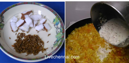 In the meantime, heat the pan and add cumin seeds and grated coconut and dry roast it and grind it in a mixer with the addition of water.