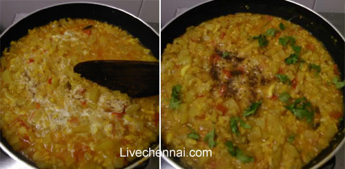 Smash well the cooked dal and the bottle gourd mix using the ladle, when you are going to prepare this curry as a side dish for chapatti ( use more water while pressure cooking the dal).