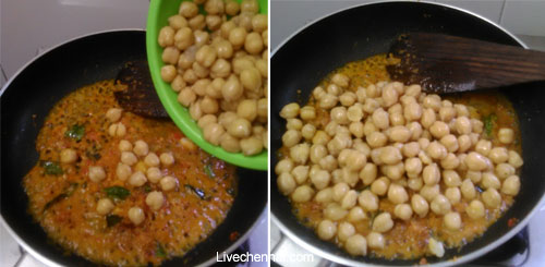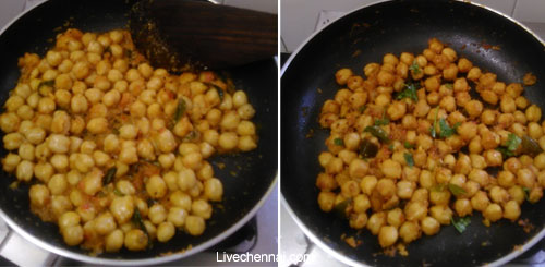 Saute well for about 3 to 5 minutes, until the masala gets coated well on top of the chana.