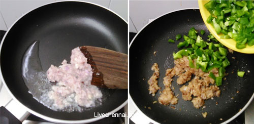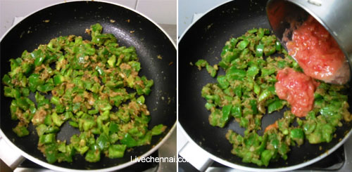 - Then add the capsicum cubes and saute well for about 2 minutes.