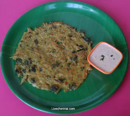 - You can easily prepare either Kambu, Carrot and Murungai Keerai Adai or Dosai and serve hot with white or Red chutney!