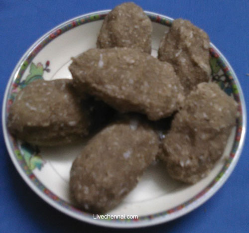 Make crumbles (Pidi Kozhukattai) out of the mixture. Either you can directly eat it or again steam cook the Kozhukattai for about 2 minutes.