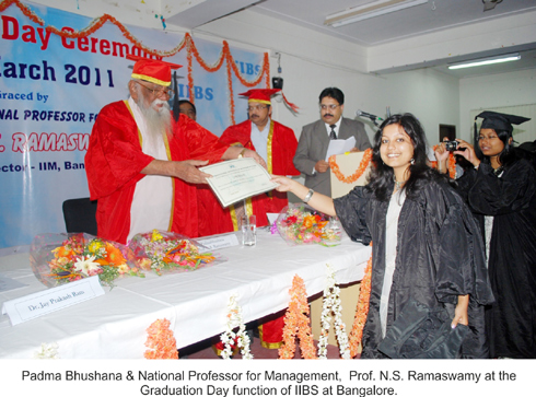 Padma Bhushana & National Professor for Management Prof.N.S Ramaswamy, who is also the Chief Mentor of IIBS, addressed the students with a note that success depends on competence, character along with God�s grace. He also highlighted the tolerance of Indians as India has never invaded any country though we were invaded more than 59 times. Indians have overcome the national barriers and successfully made a mark in the corporate sector all over the world. He strongly emphasized the value of ethical management in his address to the students.