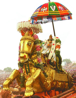 மதுரை மீனாட்சி அம்மன் கோவிலில் சித்திரை திருவிழாவின் முக்கிய நிகழ்ச்சியான கள்ளழகர் ஆற்றில் இறங்கும் நிகழ்ச்சி இன்று மிக மிக விமரிசையாக நடைபெற்றது. இன்று அதிகாலை 6.45 மணிக்கு கள்ளழகர், பச்சைப்பட்டு உடுத்தி தங்ககுதிரையில் இறங்கினார். லட்சக்கணக்கான பக்தர்கள் கள்ளழகரை தரிசித்தனர் .