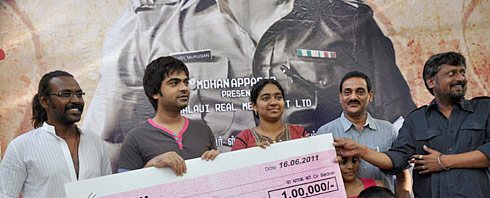 Director Dharani`s Simbu starrer Osthi movie team has distributed Rs 2 lakh cash prices to the high scorers of 12th and 10th standard in the public exams which held recently.