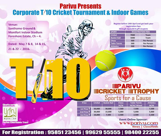 Parivu - A Charitable Trust / Magazine / Online Portal is organizing an Inter-Corporate Sports festival named Parivu Corporate Cup 2016.