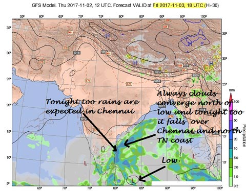 Later at night, in the Chennai coast, wind coverage will be likely again. Hence, Chennai � gear up for one more rainy night. Though it is not sure of how heavy the rain showers are going to be, rainfall is for sure! One such days with heavy showers was yesterday.