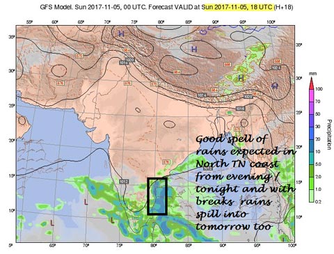 Meanwhile Tirunelveli, Kanyakumari, Nilgiris and Delta got good rains. So did vellore and Thiruvannamalai. The rainfall ending 8.30 am on 05.11.2017 are as folllows