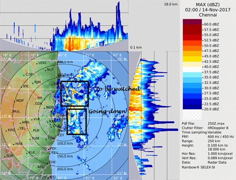 Radar shows massive clouds close to Chennai coast. Typically what it showed yesterday night. But the scenario is different. Please see the image attached, you may get some idea what i am trying to explain. The one west of us will move down but when the low moves up, the next spin will result in northern bands will fall over Chennai. At the same time it will drag the temp vortex away from us, as the main low makes a spin.