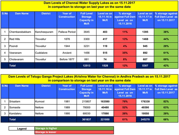 The 5 lakes have 5.3 tmc of water compared to just 1.5 tmc last year. We will also get Krishna water that too has good storage. Overall we are in better position compared to last year. But we still need more rains as the storage is just 40%. Dont compare the size of Chennai and AP dams. Ours are lakes converted for drinking water purpose, those are Dams built across perennial rivers for irrigation and drinking water purpose.