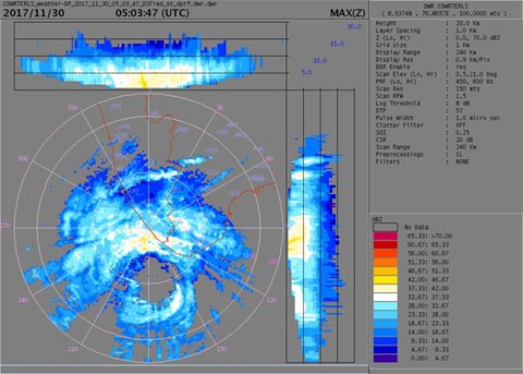 High winds and heavy are reported particularly in Kanyakumari and also Nellai belt. As long as you are inside your house, You can see th radar how the Cyclone Ockhi is moving parallely along the Kanyakumari coast.