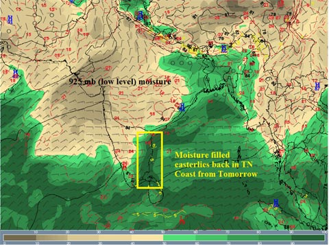 Days are nearing to forget me till the next monsoon, before that we might get some spell of rains before X`mas. There is No Low Pressure in Bay of Bengal, its purely an Easterly Wave (Trough) which is going to give rains to coastal belt of TN from today for next three days. Rains will start in most places by today. One day the interior districts may get some spells. But most of the coastal belt will get bulk of the rains.