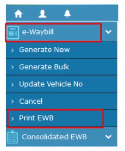 Step-1: Click on �Print EWB� sub-option under �e-Waybill� option