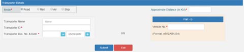 8) Transporter details: The mode of transport (Road/rail/ship/air) and the approximate distance covered (in KM) needs to be compulsorily mentioned in this part.