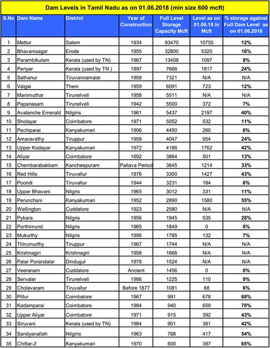 Update on storage levels on dams data available with me with minimum size of 600 mcft will be updated bi-monthly till end of the monsoon.