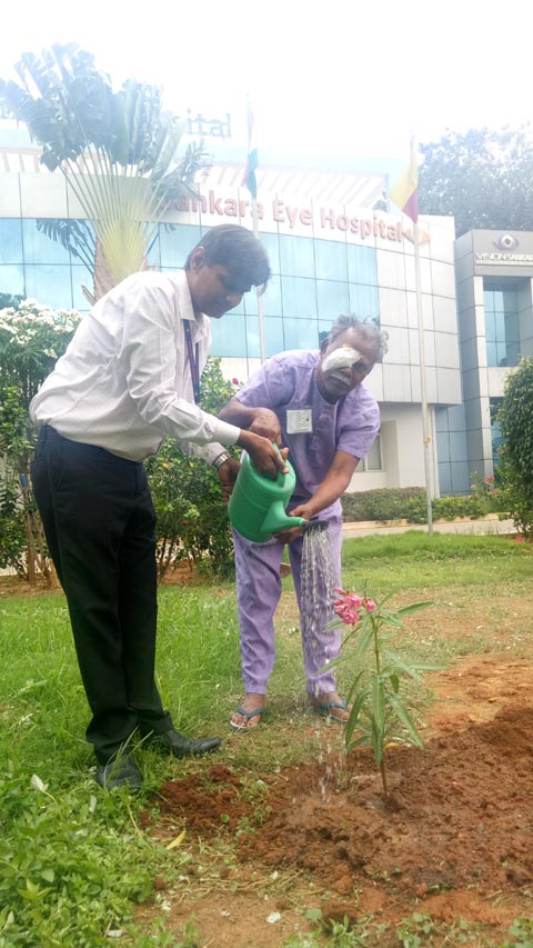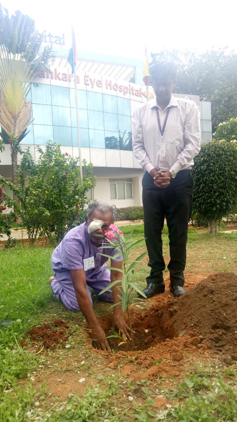 On the occasion of World Environment Day, a 64-year old man, Prakash, who underwent a cataract surgery at the Sankara Eye Hospital, Bangalore, on Tuesday, planted a sapling in the premises of the Hospital. Prakash, who came to the hospital from Gouribidanur, planted the sapling as a gesture towards saving the environment after his surgery.