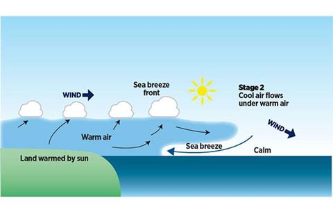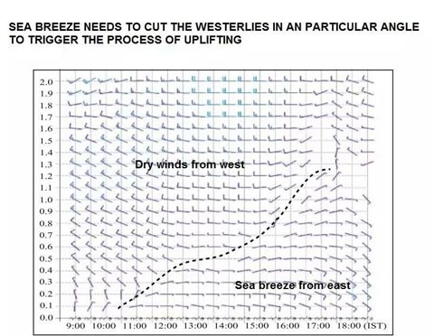 See the how Sea breeze helps formation of pop ups and today seems to be the brightest day for rains with semma hot day and ideal conditions remain.