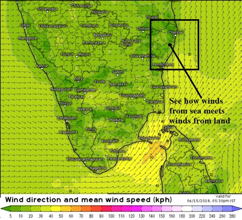As i have been saying for Rains in Chennai, the rains other side should stop. The rains in the west coast has reduced a lot and westerlies have completely weakened. This is the time for our magic man Sea Breeze to move in without any resistance. Yesterday was close but today everything looks perfect and the sea breeze is moving in and cutting the westerlies in the right angles plus the required heat, moisture and cape is available.
