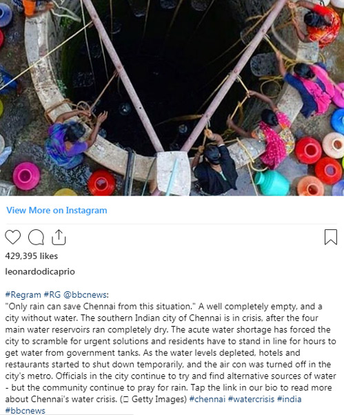 BBC had presented the present water crisis in the Chennai Metro City along with some photos. As he saw/read the news, the actor registered his grief in his Instagram Page. His observation: