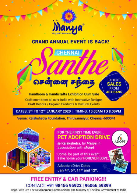 Chennai Santhe - 2020 is One of the Biggest Craft Shopping Festival in South India by Manya. It`s a Playground for shopaholics and you can run buying whatever you want without worrying about the budget. Since craftsmen and artisans directly selling the Goods prices in comparison other places will be cheap, shopping at the fair will definitely go easy on your pocket.