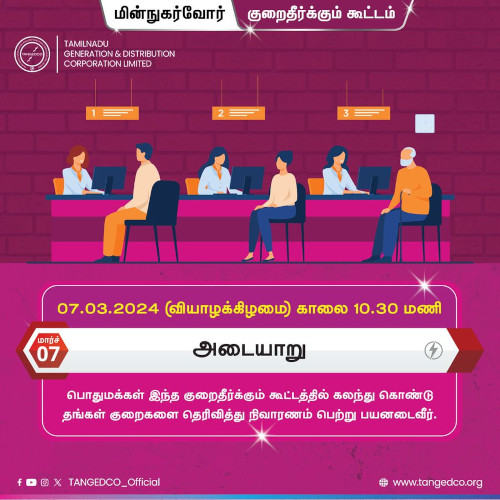 The Electricity Consumer Grievance Redressal Meeting for Adyar Zone will take place at the following address: