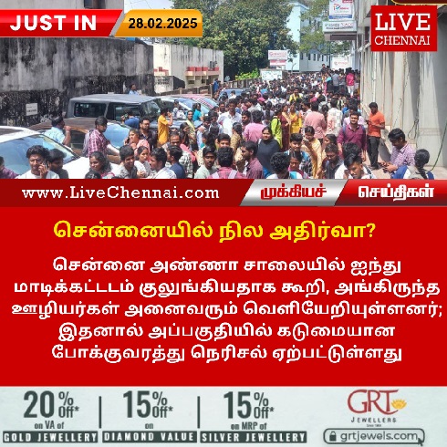 Panic ensued on Anna Salai, Chennai, after a five-storey building reportedly shook, leading to the immediate evacuation of employees and severe traffic congestion in the area. Authorities have now confirmed that the tremors were not caused by an earthquake but resulted from a ground-drilling machine operating nearby. Experts have assured the public that there is no seismic threat, and normalcy is being restored.