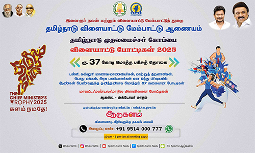 Tiruvallur District invites online registrations for the Chief Minister’s Trophy Sports Tournament from August 22 to September 12, 2025. Organized by the Sports Development Authority of Tamil Nadu (SDAT) and includes 67 types of sports events across 5 categories.