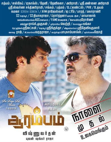 The movie Aarambam starrer Ajith, Arya, Nayanthara and Taapsee Pannu is gearing up and the released on 31st October 2013. Here the Chennai theaters list.