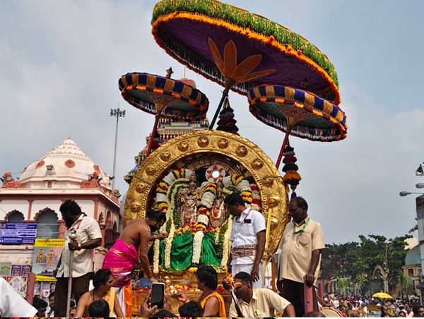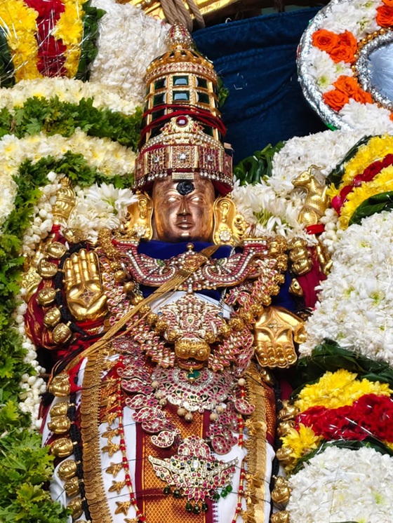 On the second day of the Karthigai Deepam festival in Tiruvannamalai, Lord Vinayakar and Lord Chandrasekar were taken in a grand procession on the golden Surya Vahanam, blessing the large gathering of devotees who had come to witness the divine spectacle.