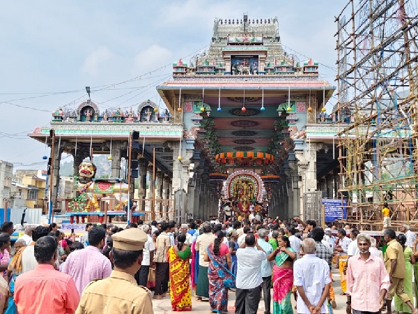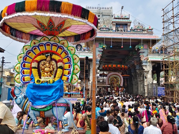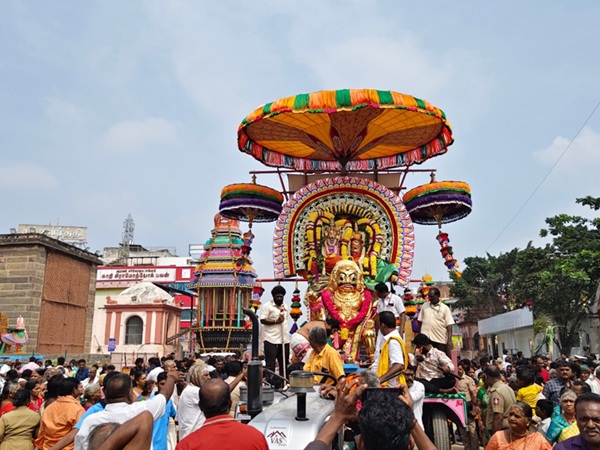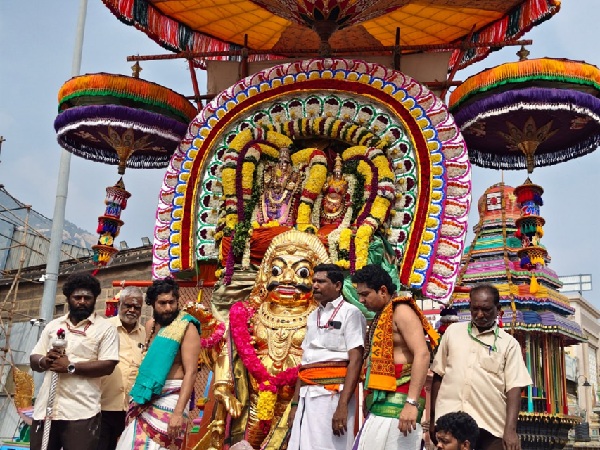 During the noon session of the 3rd Day of the Deepam Festival at Thiruvannamalai, the deities of Lord Chandrasekharar and Lord Vinayaka was taken on a procession around the street adjacent to the temple corridors. The event of Thiruvizha Undial (Festival Hundi) was performed at the 3rd corridor near the Kodimaram (flag-tree).