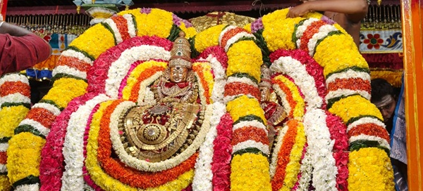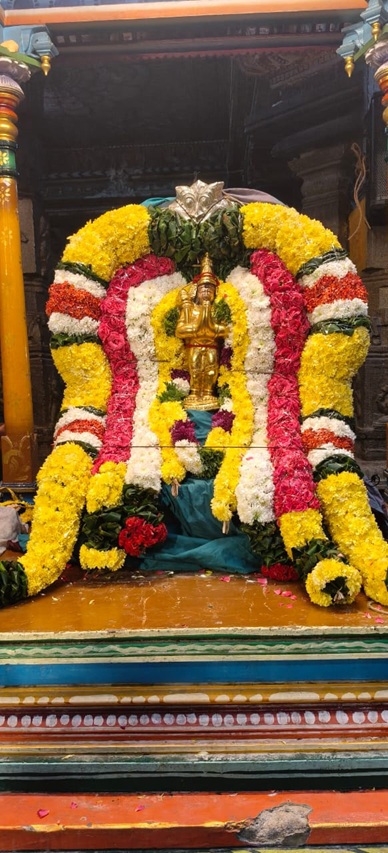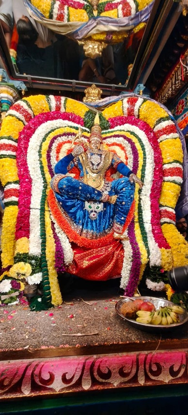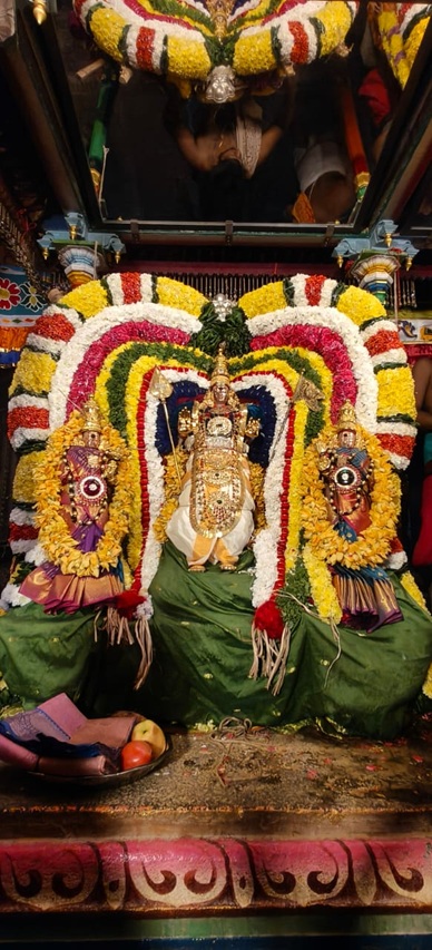 On the 5th night of the grand Thirukkarthigai festival in progress in a grand manner in the Thiruvannamalai Lord Arunachaleswarar temple, the deities of the Lord on the carriage of Rishabha (sacred bull) and the deity of Goddess Parasakthi Amman on the silver Kamadhenu (sacred cow), the deity of Lord Vinayaka on the carriage of Mooshika (sacred mouse), and the Lord Muruga and His Consorts Valli and Deivayanai on the carriage of silver peacock, and the deity of Lord Chandikeswarar on the carriage of silver Rishabha (sacred bull) were carried on procession across the corridors and streets of the temple.