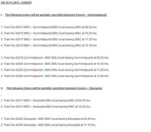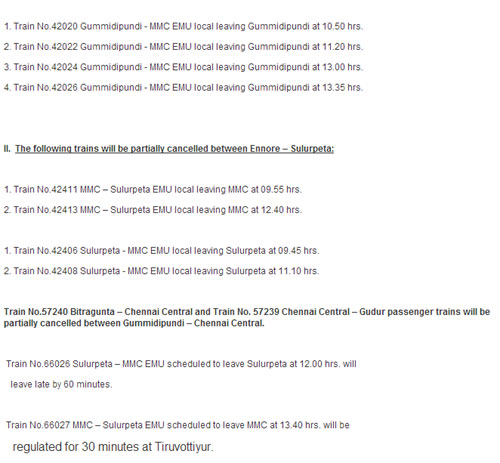 Due to line block / power block to facilitate commissioning of a yard with new panel at Attipattu, the following changes have been made in train services.