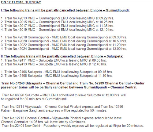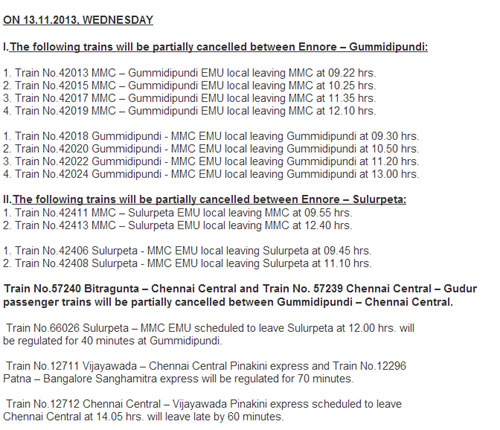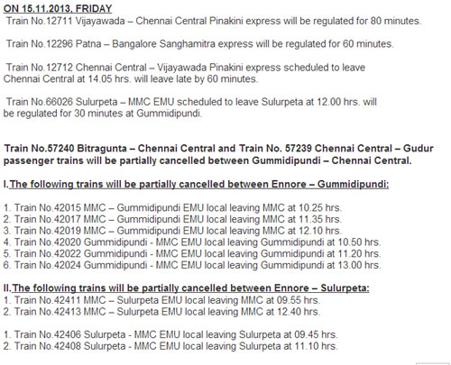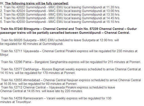 Due to line block / power block to facilitate commissioning of a yard with new panel at Attipattu, the following changes have been made in train services.