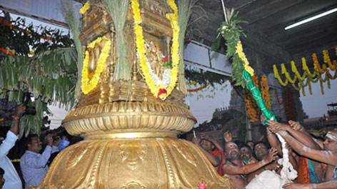 10 days Karthigai Maha Deepam festival begins with hoisting of holy flag on the golden flag mast located in the premises of the temple today.