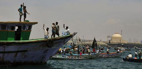 Villagers from around the Kudankalam Nuclear Plant have taken to the seas on Wednesday to protest against its commission.
