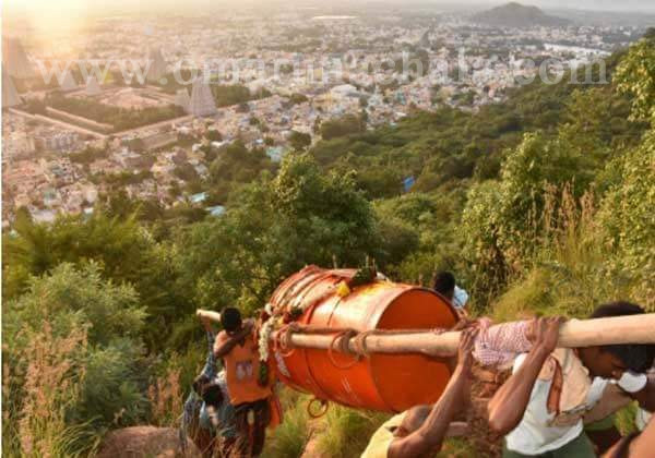 During the noon session of the 3rd Day of the Deepam Festival at Thiruvannamalai, the deities of Lord Chandrasekharar and Lord Vinayaka was taken on a procession around