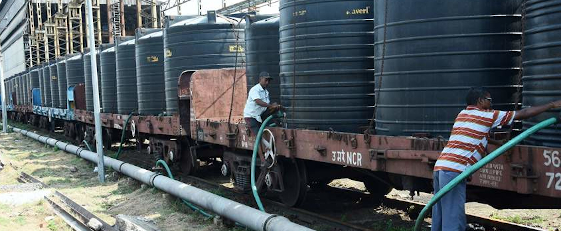 Tamil Nadu Chief Minister E. Palanisamy had announced earlier that drinking water will be supplied to Chennai by train from Jolarpettai in order to part alleviate the acute scarcity of drinking water