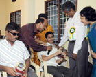 Justice S.Nagamuthu Madras High Court; Akhila Srinivasan, MD, Shriram Life Insurance; and K.Govinda Krishnan, founder of Nethrodaya, were among those who presented awards to visually challenged students